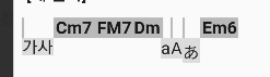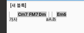 Column 위젯 안에 악보 코드를 적을 Text 위젯과, 가사를 적을 Text위젯을 담은 상태입니다.