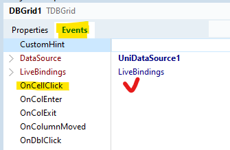OnCellClick 항목 옆에 빈칸 있다. 더블클릭해보자