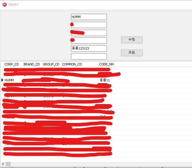 이 상태에서 실행을 시킨다면, 우리가 클릭한 cell의 CORP_CD 열 값이 빈칸에 뜰 것이다.