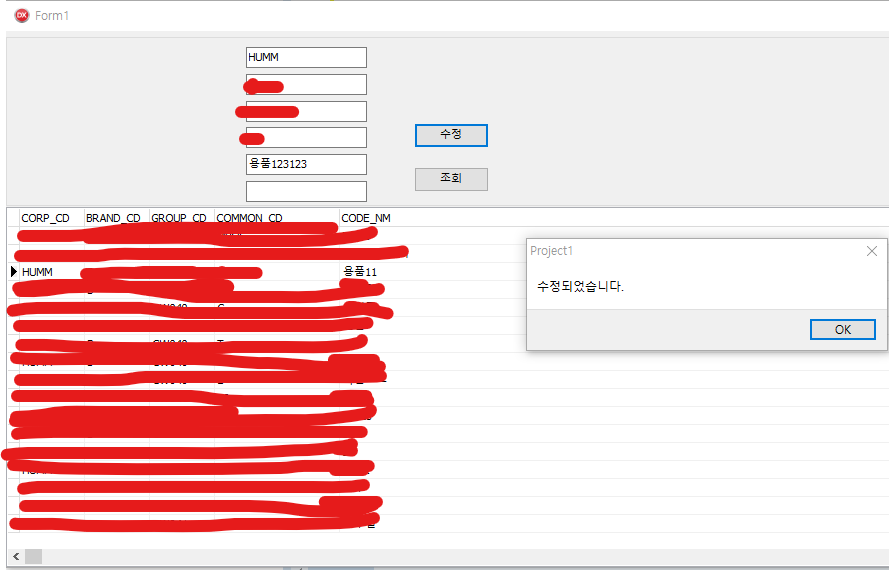 Form 창에서 '수정'버튼을 더블클릭해 코드를 작성하자.
