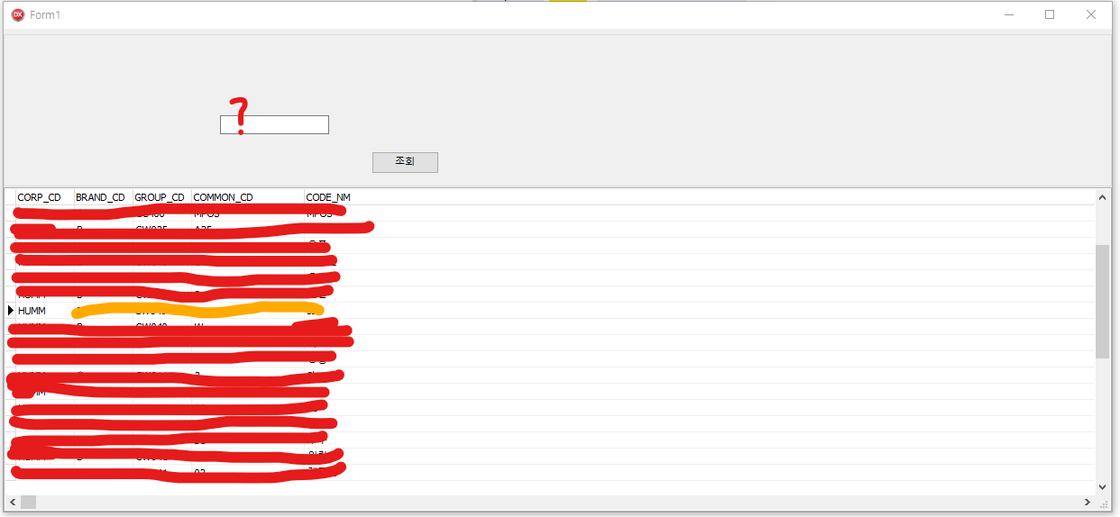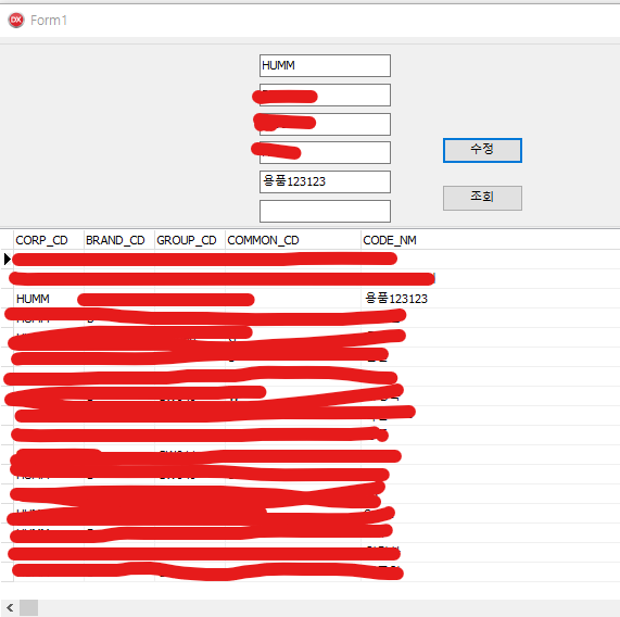 이 상태에서 실행을 시킨다면, 우리가 클릭한 cell의 CORP_CD 열 값이 빈칸에 뜰 것이다.
