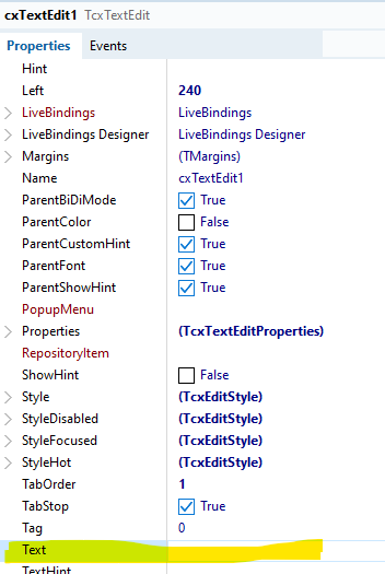 TcxTextEdit 컴포넌트는 사용자가 텍스트를 입력할 수 있는 기입창이다.
