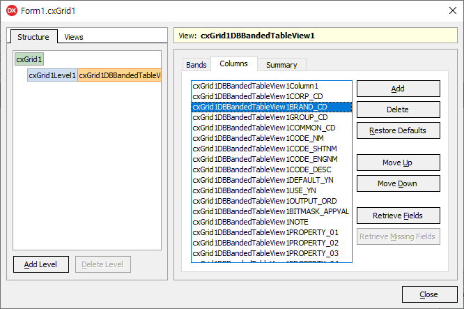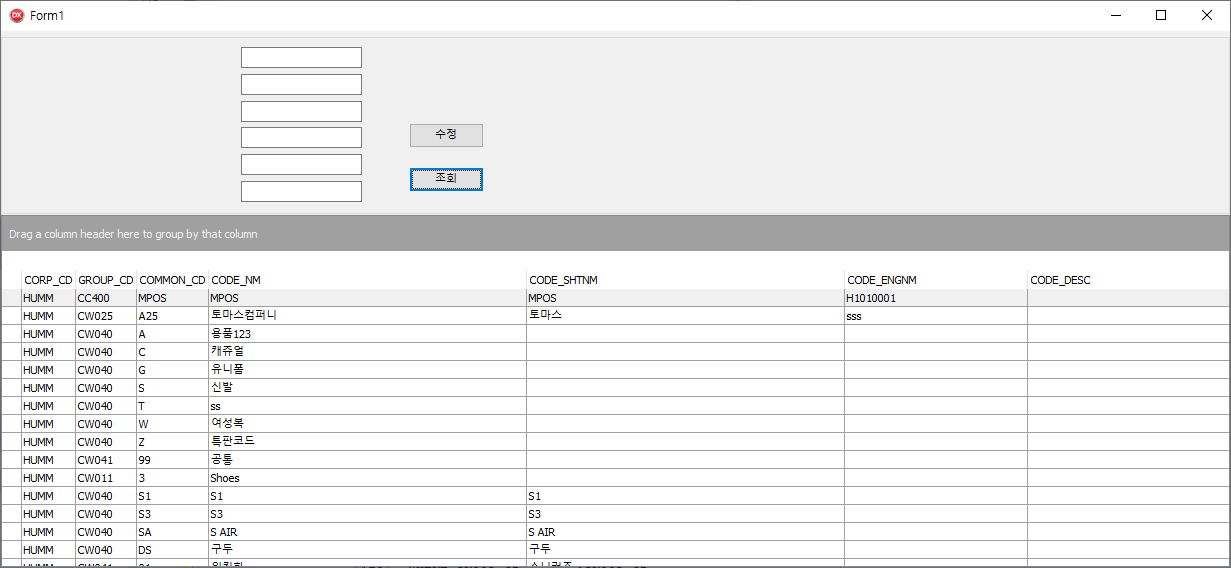 그리드는 DB에 등록된 모든 컬럼이 알아서 자동으로 떴지만,