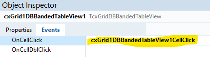 뷰를 선택한채로 이벤트 탭에 들어가 OnCellClick 이벤트 항목을 더블클릭.