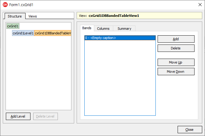 레벨에 마우스우클릭 - Create View - DB Banded Table 클릭