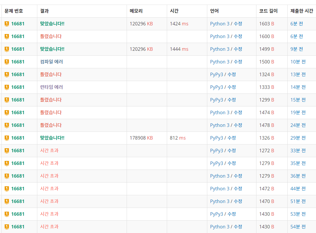그래서 나도 집합을 쓰지 않도록 해보았으나 여전히 시간초과였다.