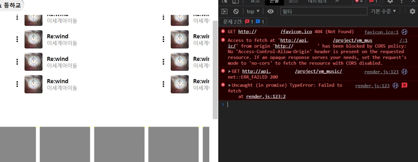 CORS 오류가 떴다.