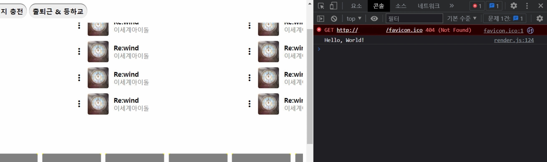 이 파일을 실행하고 한번 크롬으로 접속해서 콘솔을 확인해보았다.