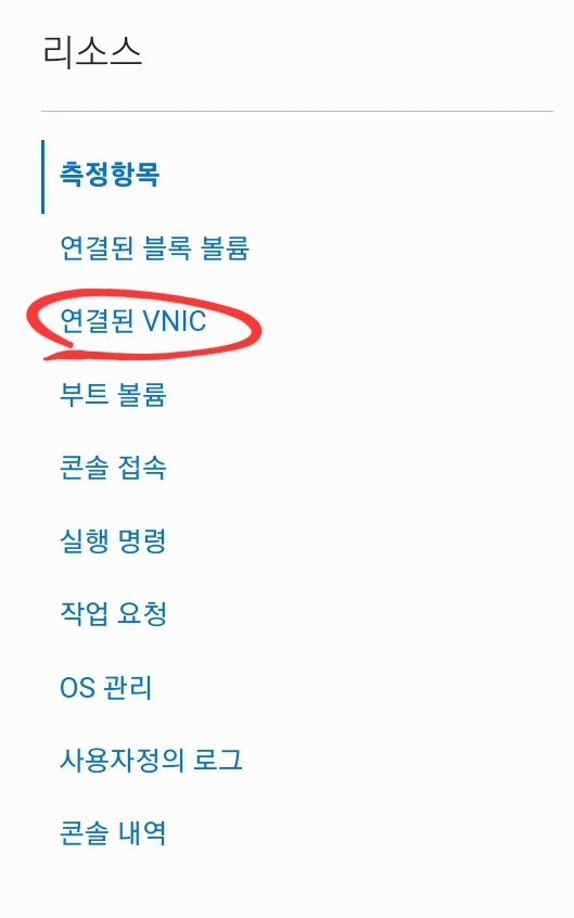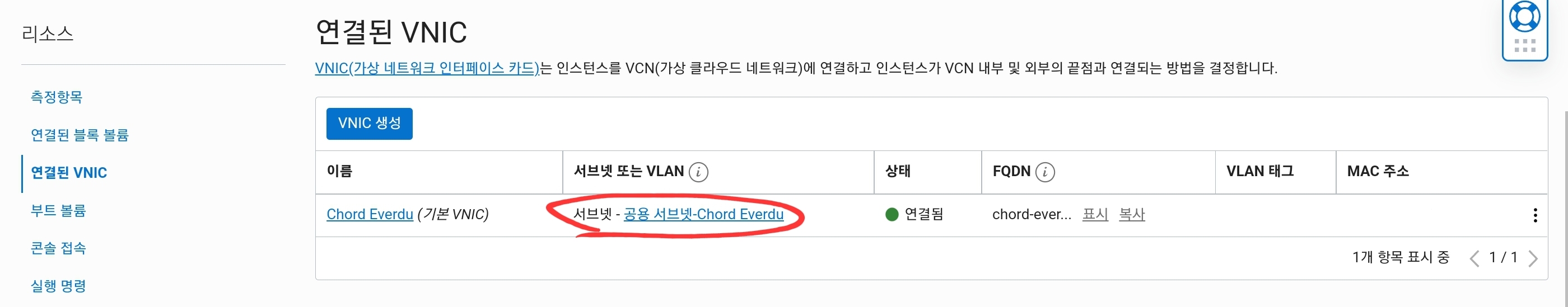 연결된 VNIC 를 선택합니다.