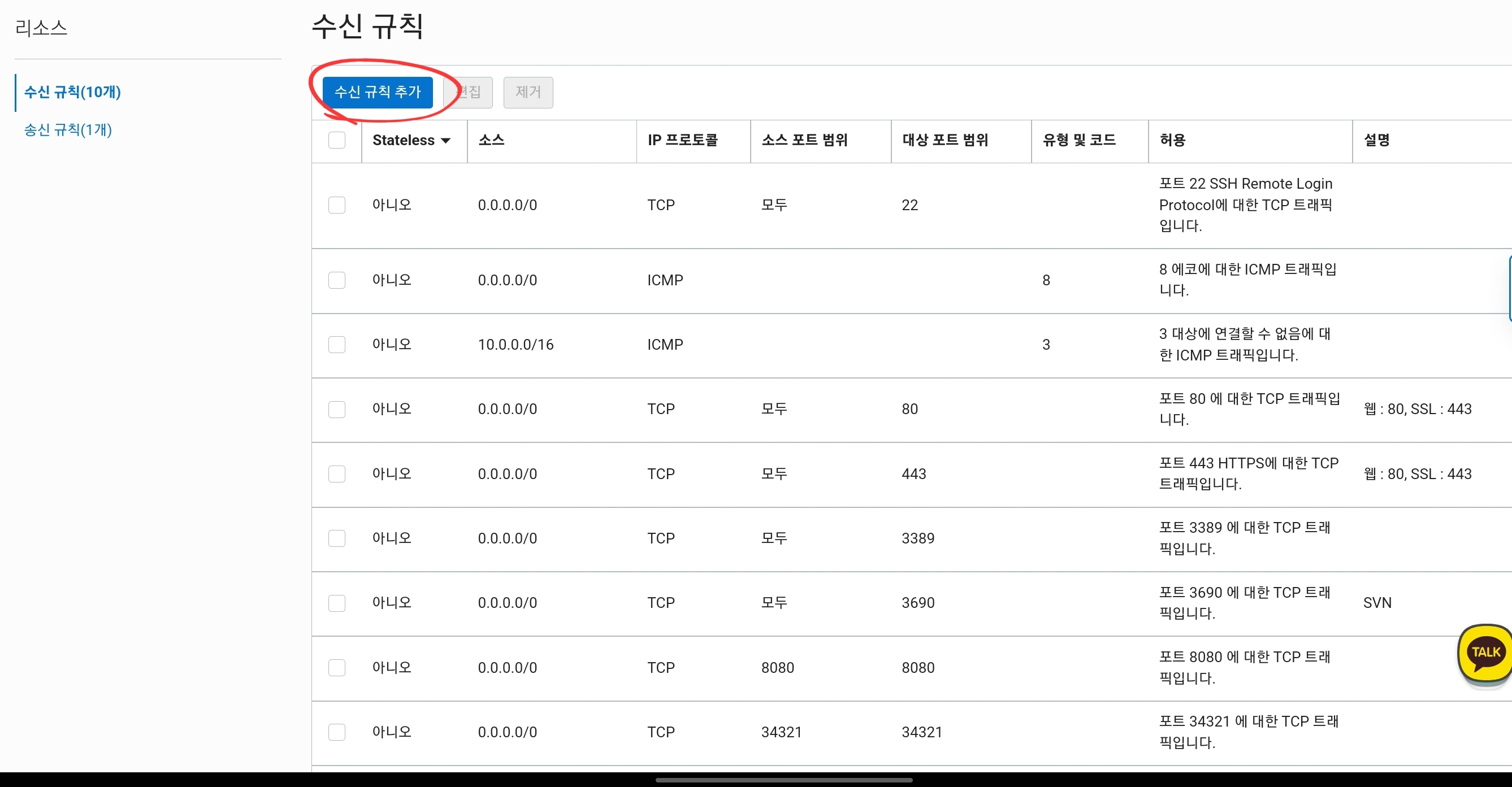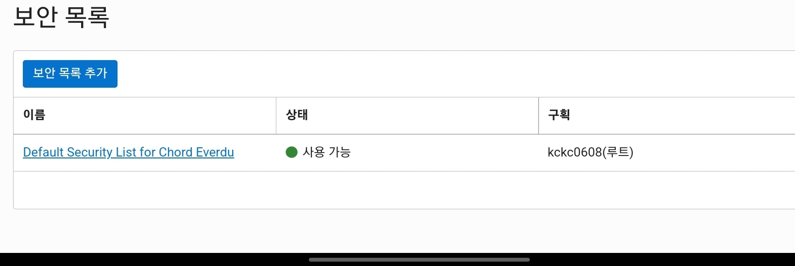 설치가 끝났으면 오라클 클라우드 네트워크 세팅에서 포트를 열어줍니다.