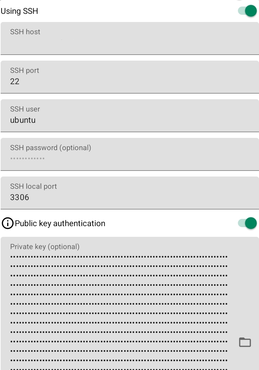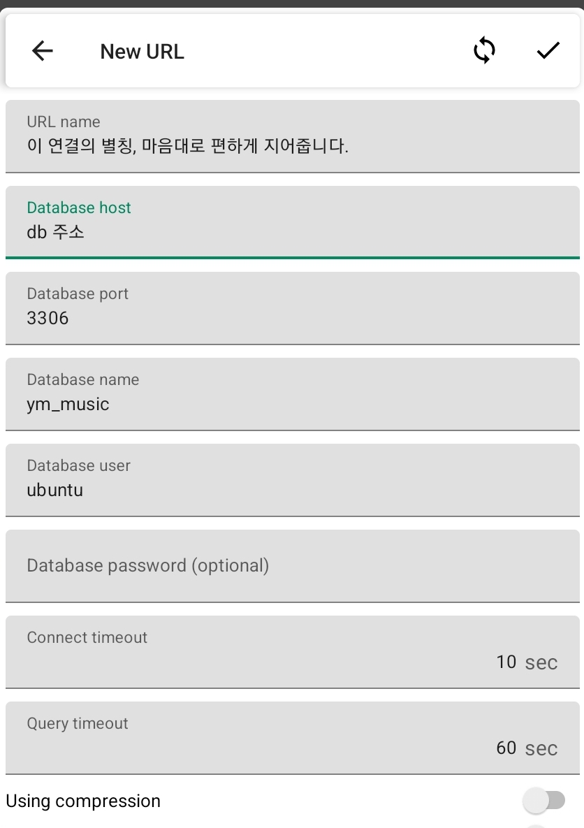 이때 이 앱에서는 SSH 정보를 넣지 않아야 접속이 되니 주의합니다.