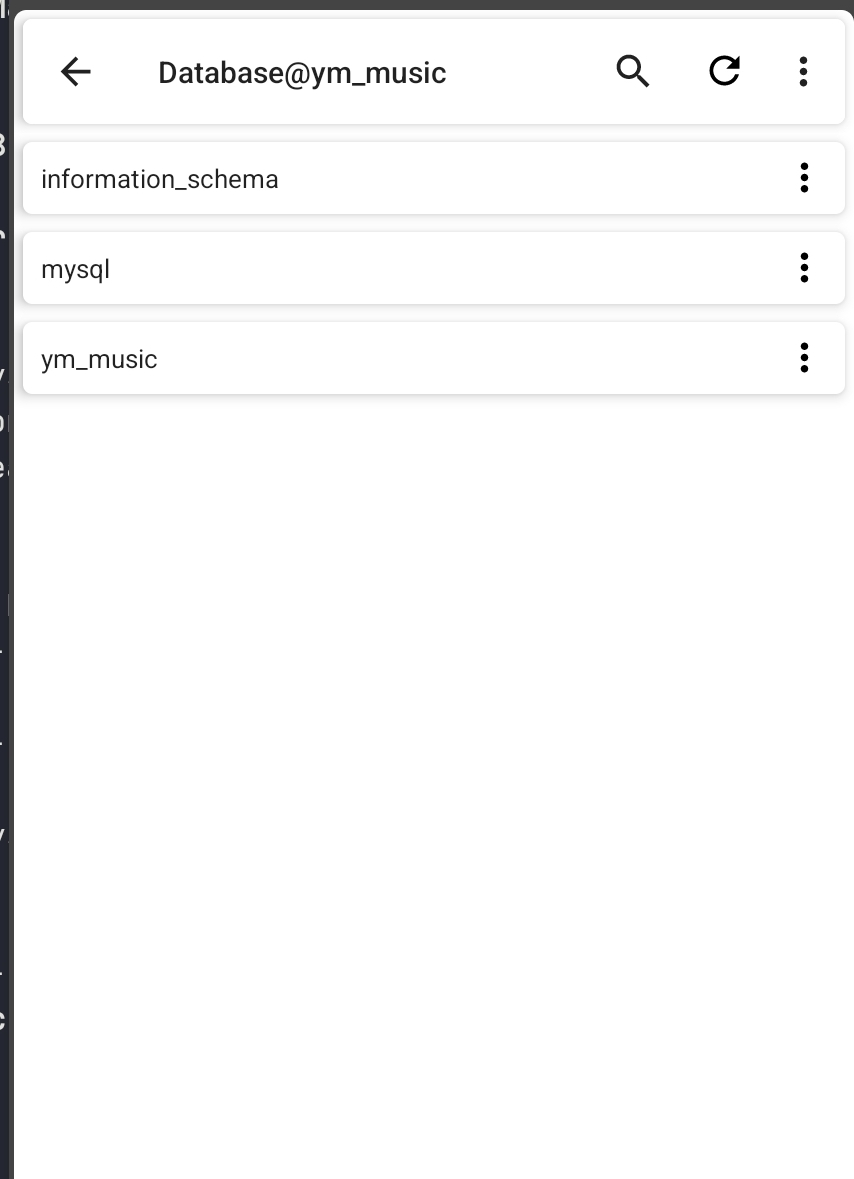 저는 ym_music 이라는 데이터베이스를 루트에서 만들고