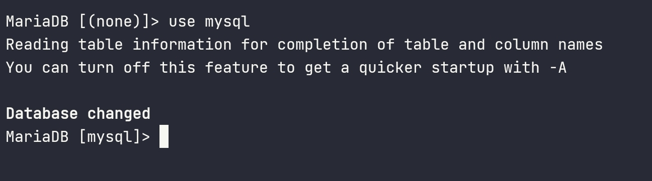 mysql 데이터베이스로 이동합니다. (use mysql; 실행)