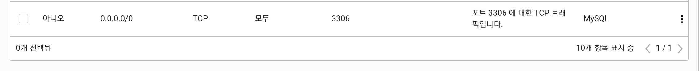 그래서 0.0.0.0/0 은 서버에 접속하는 모든 IP의 모든 포트에 대해 이 규칙을 적용한다는 뜻입니다.