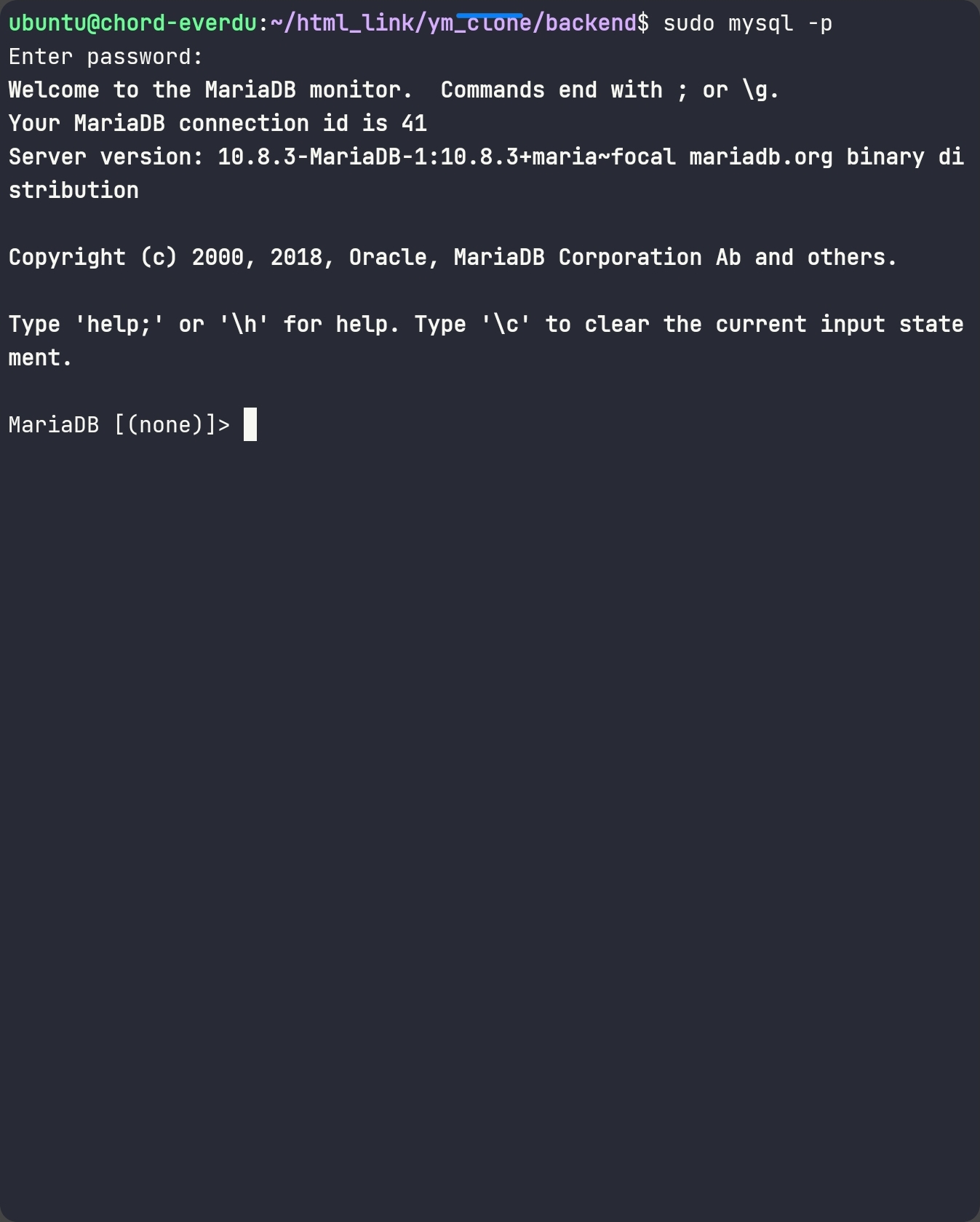 우분투 20.04 LTS 기준, 이 명령어를 입력하면 마리아DB 서버 설정파일로 들어갈 수 있습니다.