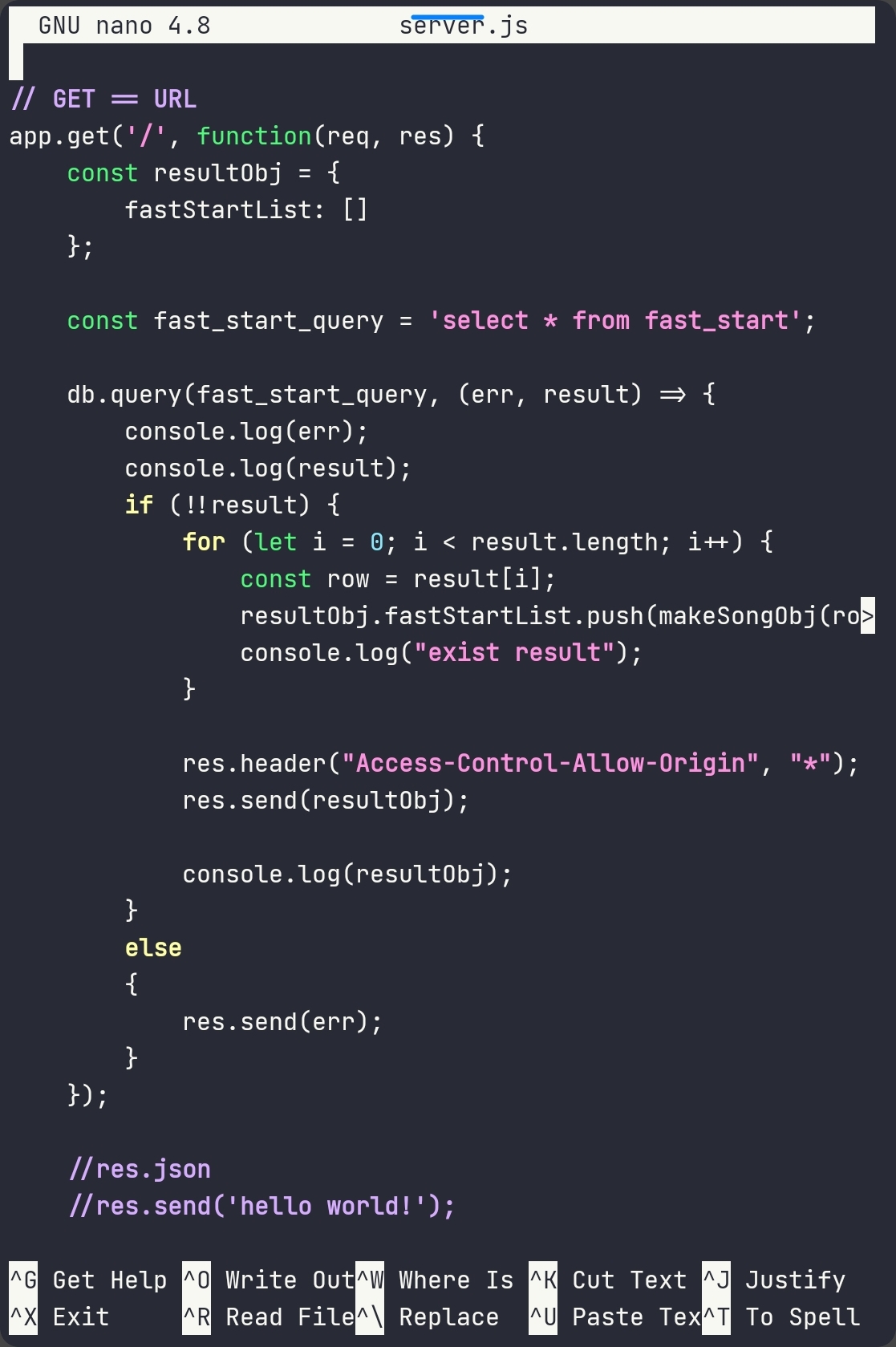 쿼리를 실행해서 쿼리에 오류가 없다면 resultObj에 아까 미리 만들었던 노래 정보 객체를 담아서
