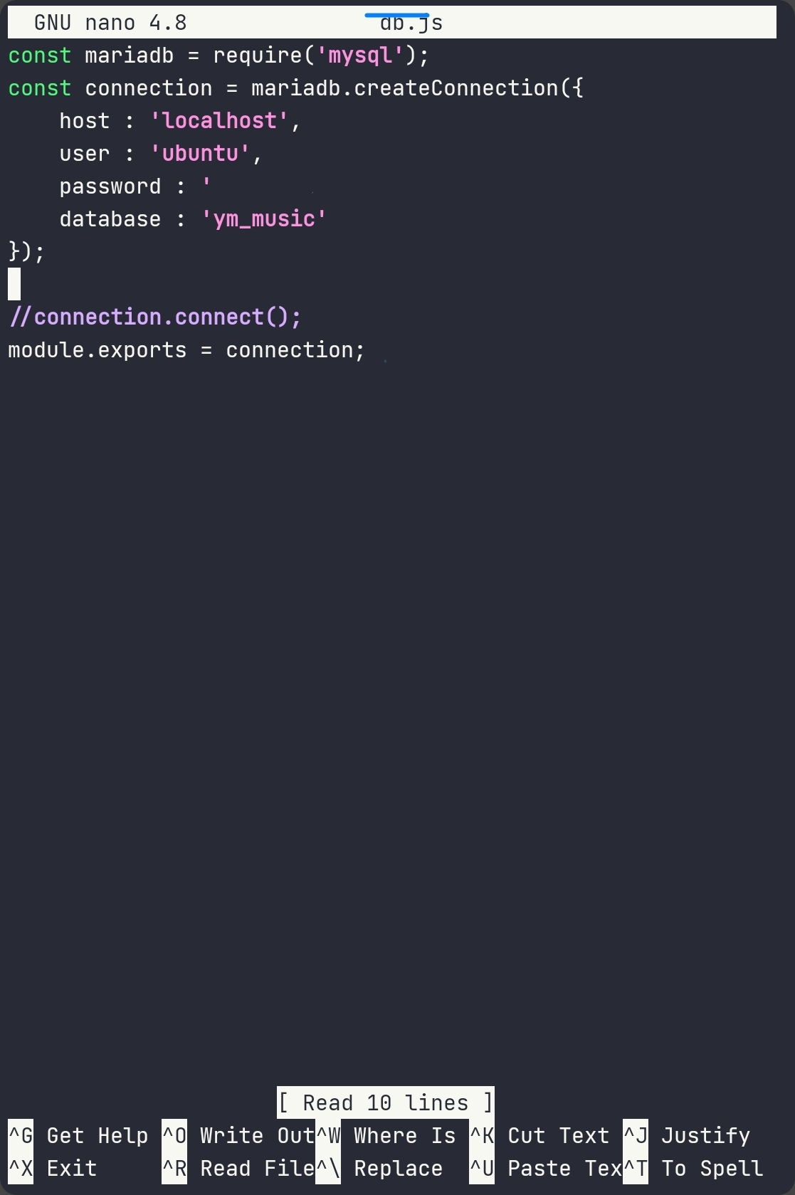 DB서버와 nodejs 서버가 같은 곳에 있어서 localhost 로 접속하도록 했다.