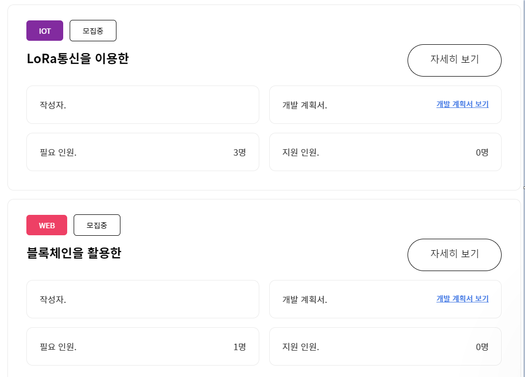 모집글의 계획서에는 나의 프로젝트에 대한 소개와 함께