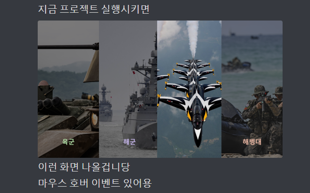 마우스를 가져다 대면 화면이 양 옆으로 넓어지면서 군종을 선택할 수 있게 된다.