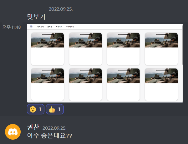 | [국방오픈소스아카데미 해커톤] 4. 특기 상세 페이지 만들기 & 멘토링 1회차 (2) | 2022.11.06 |