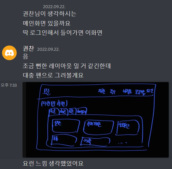 팀원분도 이것 저것 참고 사이트를 제시하시면서 아이디어를 공유했다.
