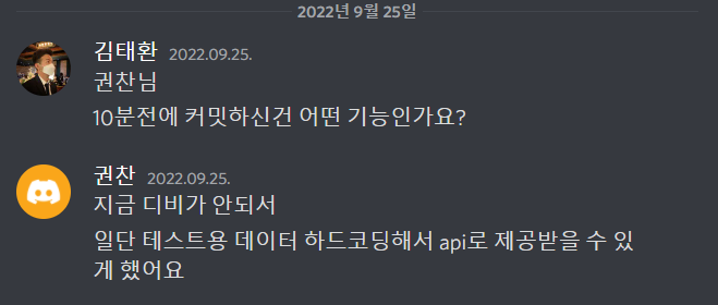 그래서 임시로 하드코딩 데이터를 넘겨주도록 API 를 만들었다.