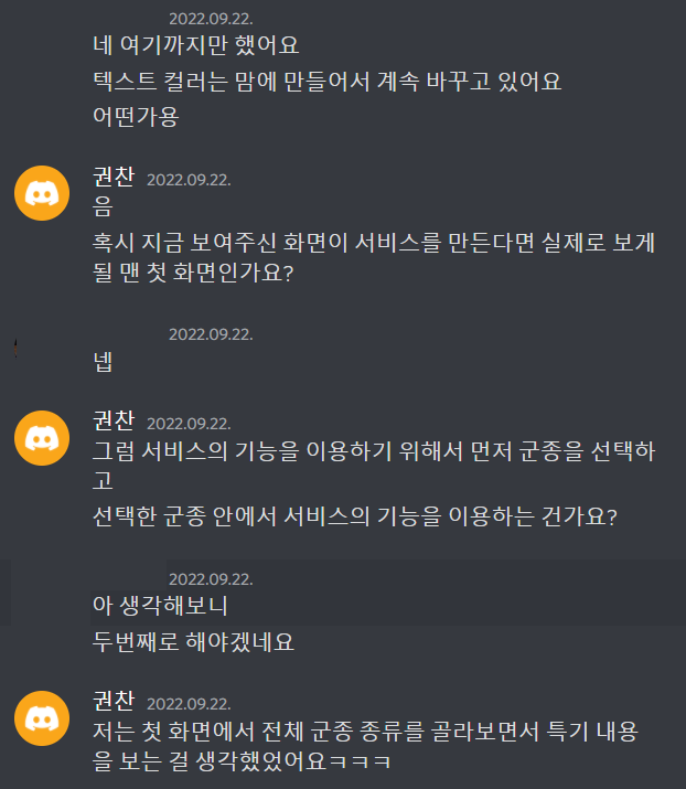 그리고 이 프로토타입을 보다가 궁금증이 생겨서 또 기획 의논을 했다.