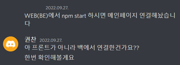 9월 27일부터는 백엔드와 프론트의 연동작업이 시작되었다.