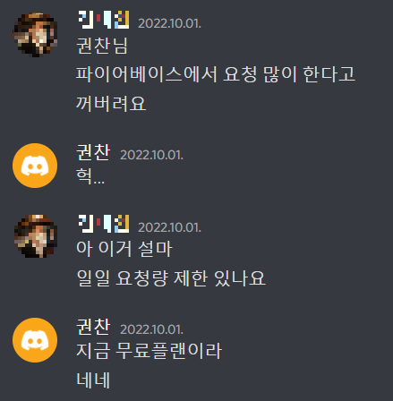 이 많은 데이터를 넣은 이후로 데이터 조회를 자주했는지 파이어베이스 사용량에 한도 초과가 걸린 것이다.