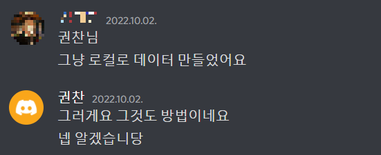 그렇게 로컬에 데이터를 넣고 10월 2일 첫 멘토링을 받았다.