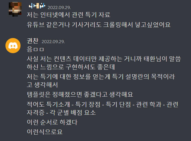 이후로는 우선 특기 상세 페이지에 어떤 내용이 들어가면 좋을지 의논했다.