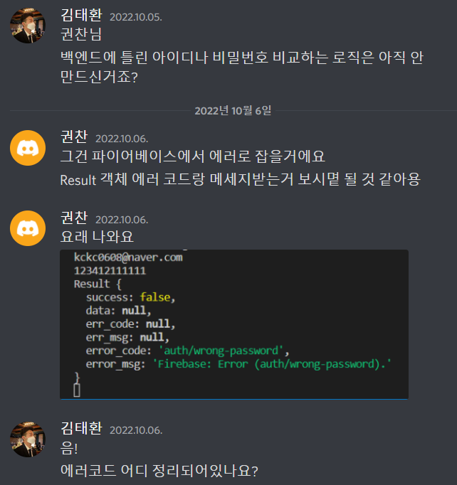 에러처리도 꼼꼼하게...는 아니지만 틀린 비밀번호, 없는 아이디, 이미 등록된 이메일 정도로