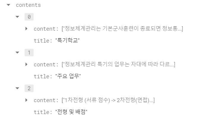 그리고 content 속성이 지금 이렇게 리스트로 보이는데 리스트인 이유는