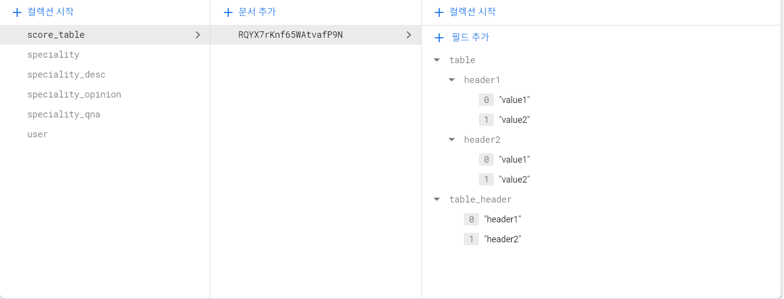 그리고 헤더의 순서를 정해주기 위해 테이블 헤더 필드를 만들어 헤더의 순서를 정해주었다.