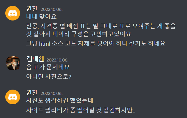 그래서 아예 표 html 코드를 텍스트로 저장해버릴까도 고민했다.