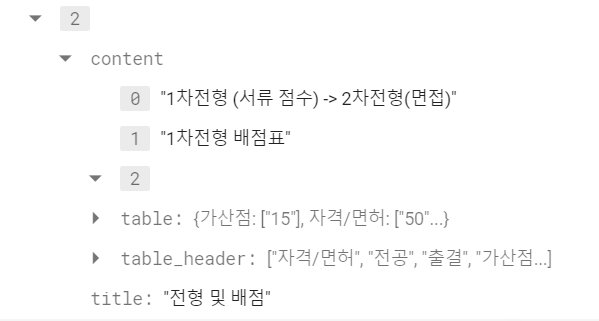 이렇게 특기 요약, 주요 업무, 지원 자격 등 내용 구성을 미리 정해두고 각 섹션 별로 데이터를 저장했었다.