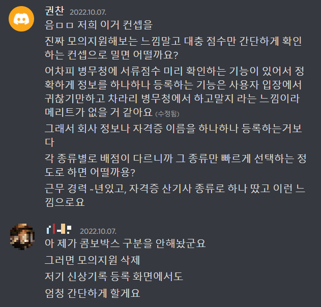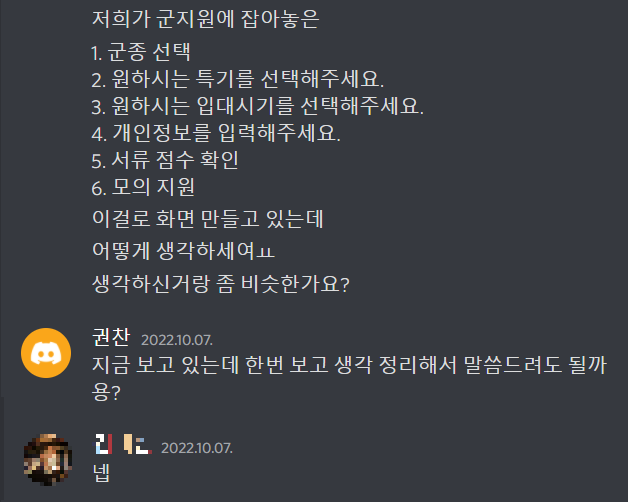 팀원분도 내 의견에 공감해주셔서 군지원은 간편함을 밀고 가기로 했다.