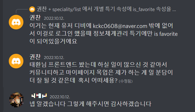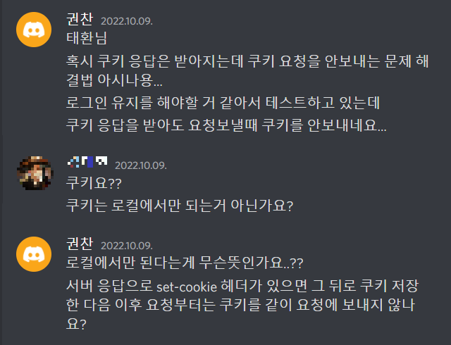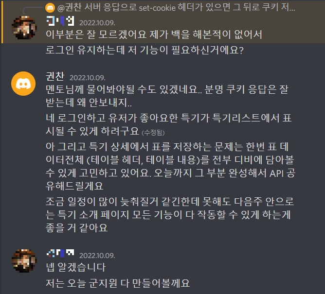 그리고 로그인을 구현하다가 문제가 생겨서 팀원분께 도움을 요청했었다.