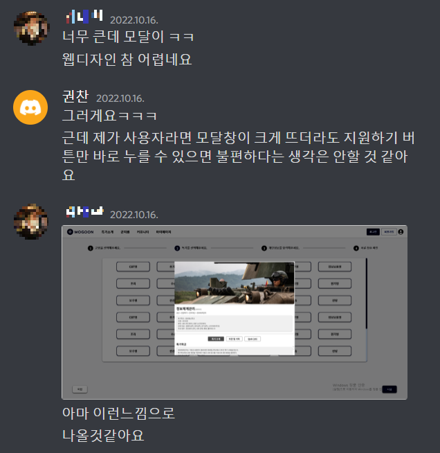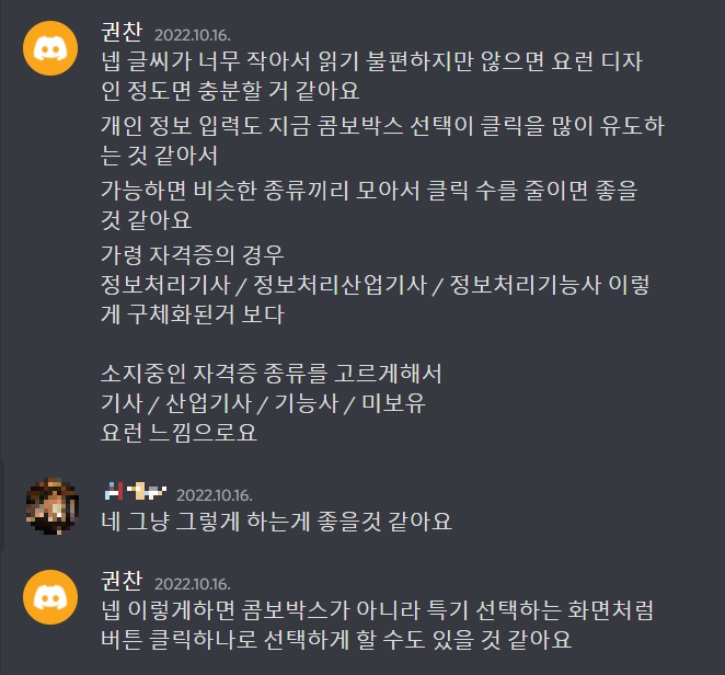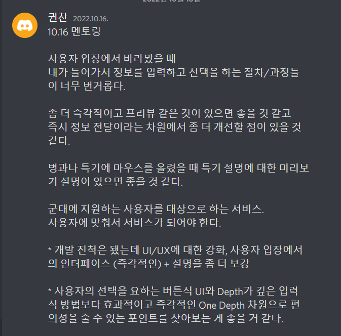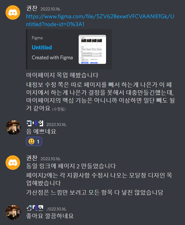 그리고 다른 부분의 UI UX에 대한 부분도 의견을 공유했다.