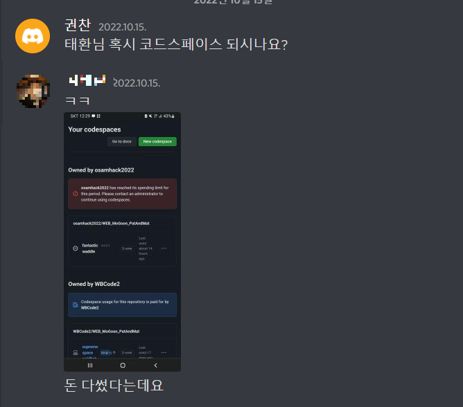 해당 팀 계정에 할당된 돈을 다 썼다고 한다ㄷㄷ