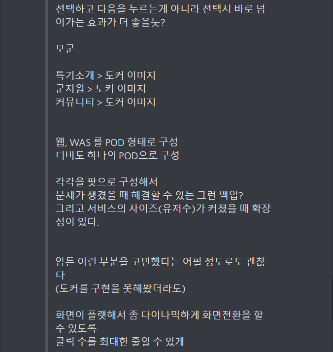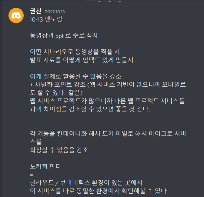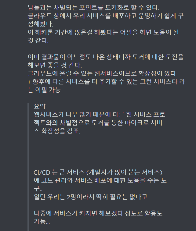 그런 팀과 차별을 두려면 도커같은 여러 기술적 고민도 필요할 것 같다는 조언도 해주셨다.