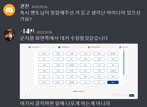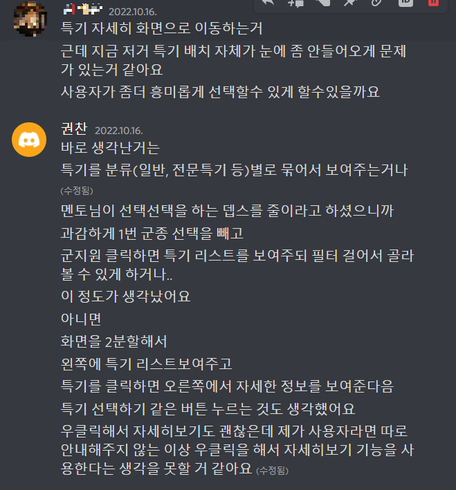 그리고 다른 부분의 UI UX에 대한 부분도 의견을 공유했다.