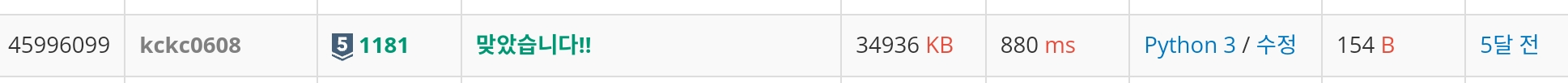 근데 내가 5달 전에 파이썬으로 푼 코드와 오늘 파이썬으로 푼 코드의 길이가 비슷한데 시간차이가 많이 났다.