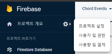 Firebase Console 설정의 '프로젝트 설정' 으로 들어간다.