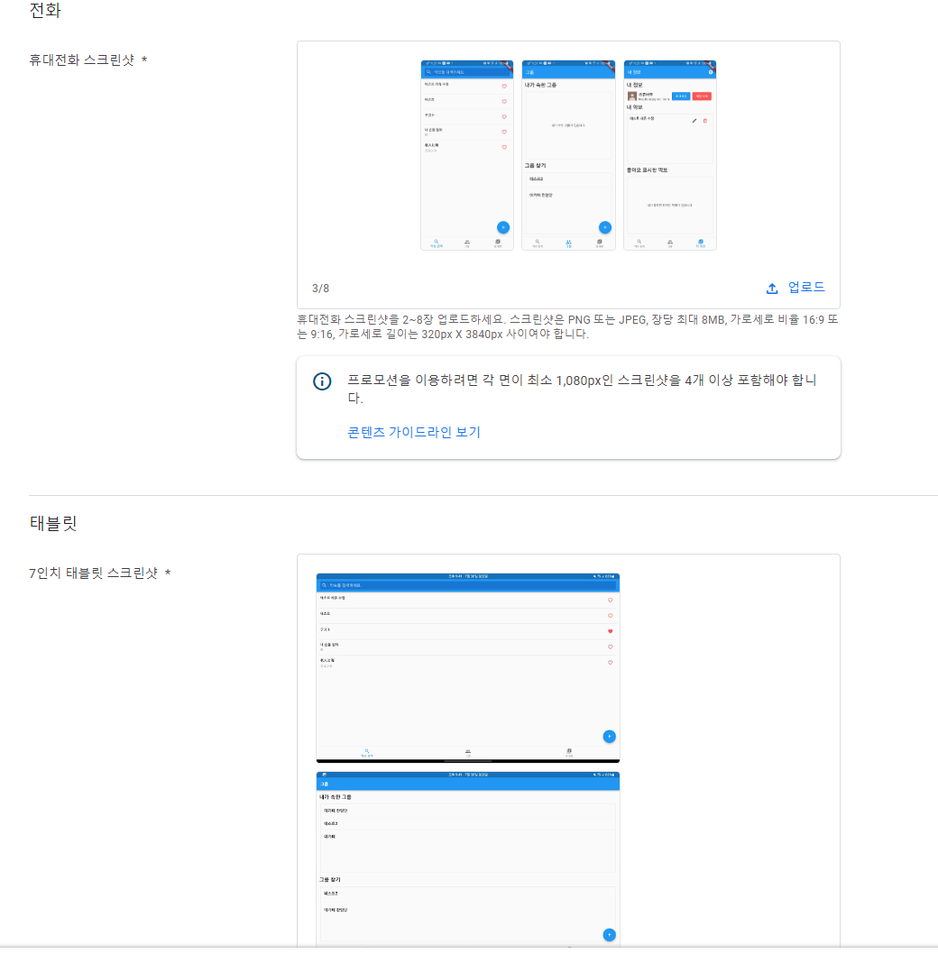 같은 태블릿 스크린샷인데 10인치에 사이즈가 안맞는다고 안올라가서 당황했다.