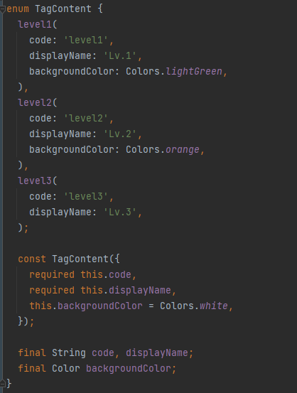 Tag 라는 커스텀 위젯을 만들었는데, 이 Tag 라는 위젯에 TagContent 라는 하나의 enum 을 넘겨서