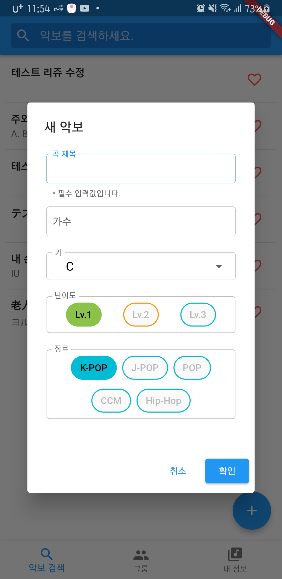 기존에 db에 레벨과 장르 데이터가 없었던 악보에 대해서는 태그가 보이지 않는다.