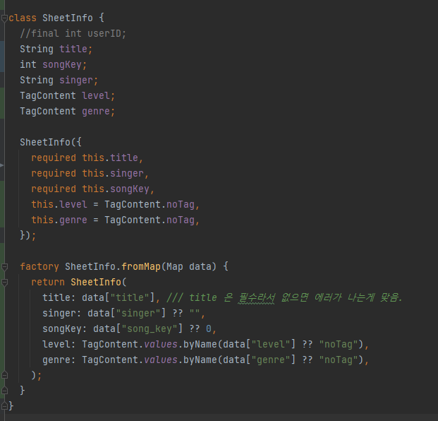 sheet info 라는 데이터 클래스를 만들어두고 활용하지 않았던 코드가 많아서