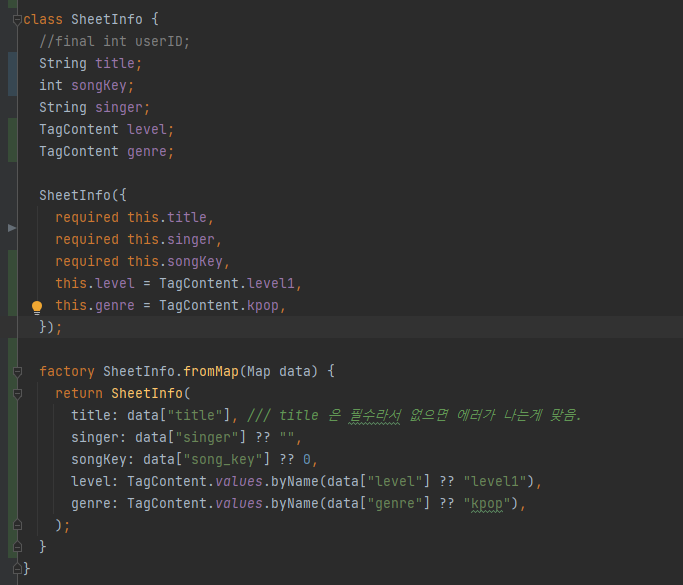 기존 db 데이터에는 level, genre 가 없기 때문에 매개변수에 기본값을 넣어 활용할 수 있게 하였다.