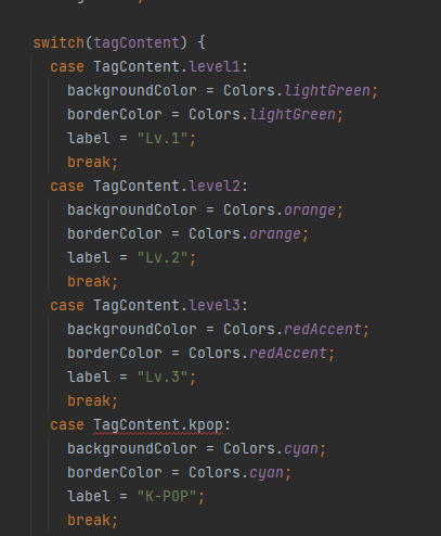 각 값마다 태그의 배경색과 보여질 내용을 하드코딩했다.
